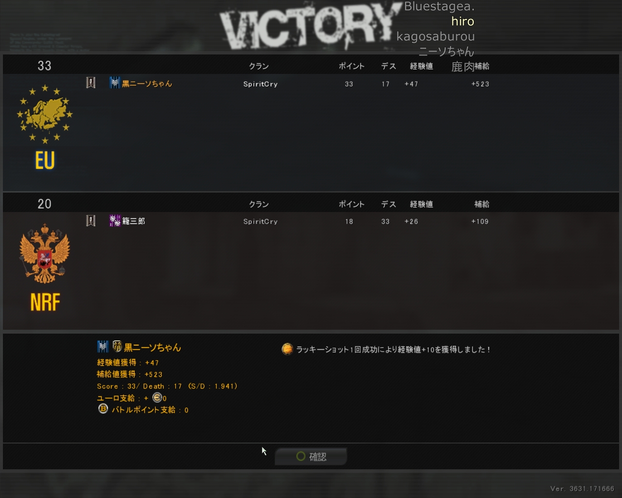 SRは野良では調子が今日は良かったです。