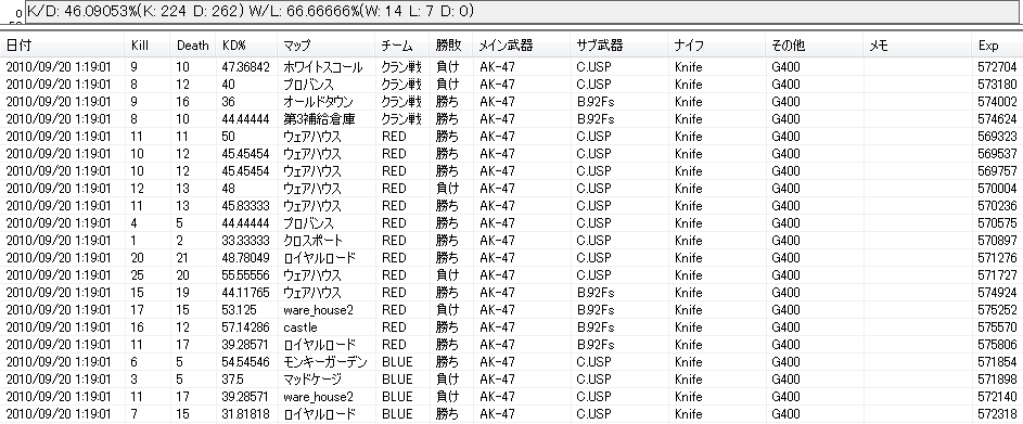 目標KD率43.5% まで: 168.708 Kill (今日のペースであと: 7.6日)