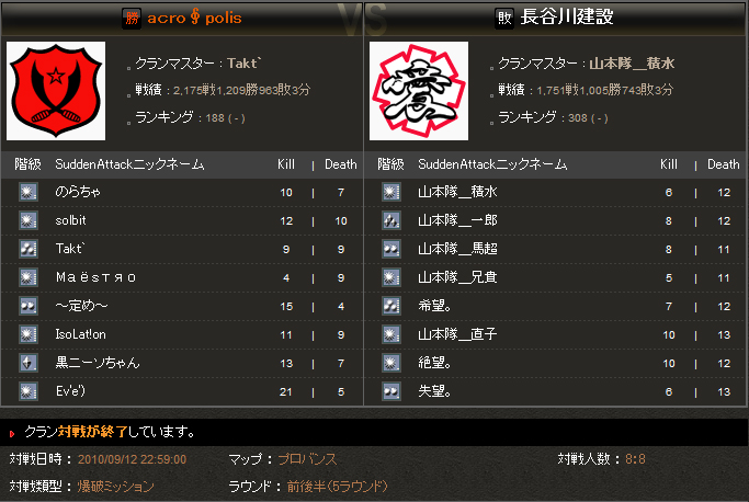 相手の一人のA連グレがオレより上手かったです。3~4回A連にグレ来ます。そのうちの2発はよく外してますが、確実に死ぬから守る時非常に困りました。