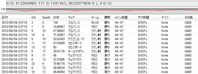 目標KD率43% まで: 119.79 Kill (今日のペースであと: 6.9日)